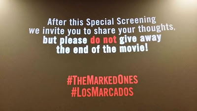 The line started moving before we knew it and upon showing our tickets to the usher we were given two vouchers 1 for a free popcorn & soda and another for a free shirt (which I ended up getting a few of). And as if that wasn't cool enough, we got perfect seats. And when I say perfect, I mean perfect, not too high or close and dead center. The show was being hosted by 106.6 KMEL, a bay area radio station that plays R&B and rap, not my cup of tea but still cool that they were there. Now with all that said, I realize I had an awesome experience and that alone easily could have enhanced the film, and with that out there I feel comfortable speaking about the film. The Marked Ones was so good that the young crowd that was in attendance was completely silent throughout the entirety of the film, excluding the begining of the film which like all good found footage is light hearted and funny.
