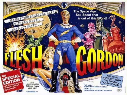 "Emperor Wang (the Perverted) is leader of the planet Porno and sends his mighty "Sex Ray" towards Earth, turning everyone into sex-mad fiends. Only one man can save the Earth, football player Flesh Gordon. Along with his girlfriend Dale Ardent and Professor Flexi-Jerkoff, they set off towards the source of the Sex Ray, unaware of the perils that face them!"