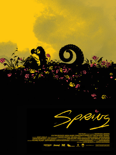 Two years ago, a little film called Resolution made it to number 7 on our Top 10 list. I personally was very moved by the film and actually became so frightened that I had to slow walk through my house at night. Now my reaction was very unique as I've never heard of another person being scared by that film but this our director team of Aaron Moorhead and Justin Benson return with a film that's even got Richard Linklater talking. Their Drama/Horror Spring is best described as an H.P Lovecraft story hidden in a Linklater slice-of-life film.