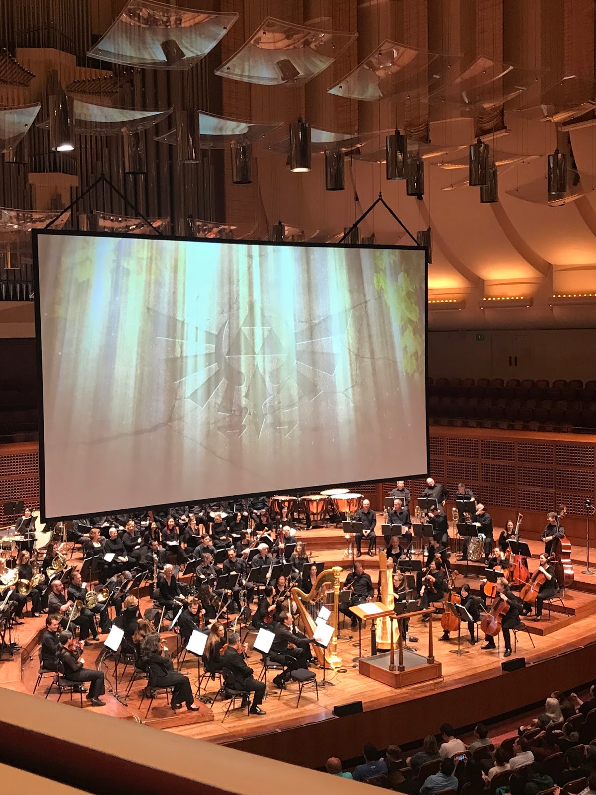 Above is a picture from where I was sitting. I've decided to aim for seats in this section because the pricing isn't super expensive and for the events like these where you watch what's on the screen you get a great view of both the screen and the orchestra. For the Zelda symphony I actually ended up going by myself because when I went to get the tickets there was only about ten left and none of them were together so I just got myself a ticket. I didn't have any worse of a time because I was alone, but walking through and taking Bart to San Francisco by myself for the first time was a bit unnerving. The Davies Symphony Hall is really beautiful inside and out, and very accommodating. They sometimes set up exhibits about the event happening inside, like for the Pixar one they had a concept art gallery for some of the movies. You can also bring food and drinks into the hall.