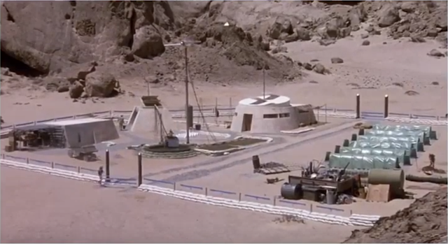 Here we see Swayze brave the barren sands of Tatooine. The body in the foreground is a mutant he beat up.